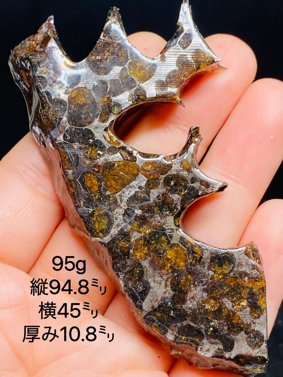 - パラサイト隕石 95g セリコ隕石 94.8㍉ 隕石 鉄隕石 コーティング済み パラサイト メテオライトジャパン 高品質 隕石原石