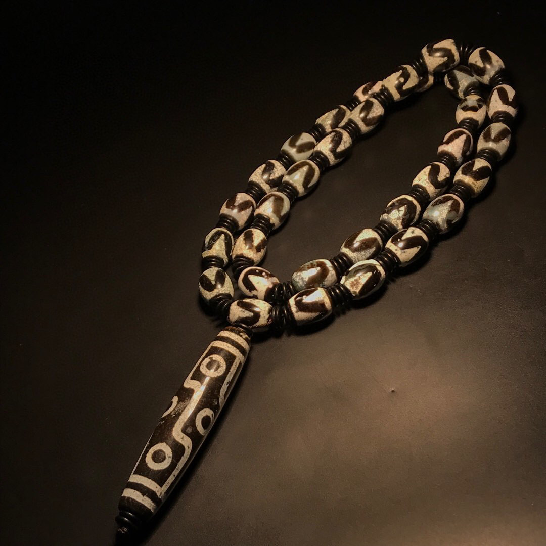 - 【超珍館蔵】瑪瑙製 細密彫 虎牙象雄天珠 九眼象雄天珠ネックレス 置物 古賞物 古美術品 稀少珍蔵品