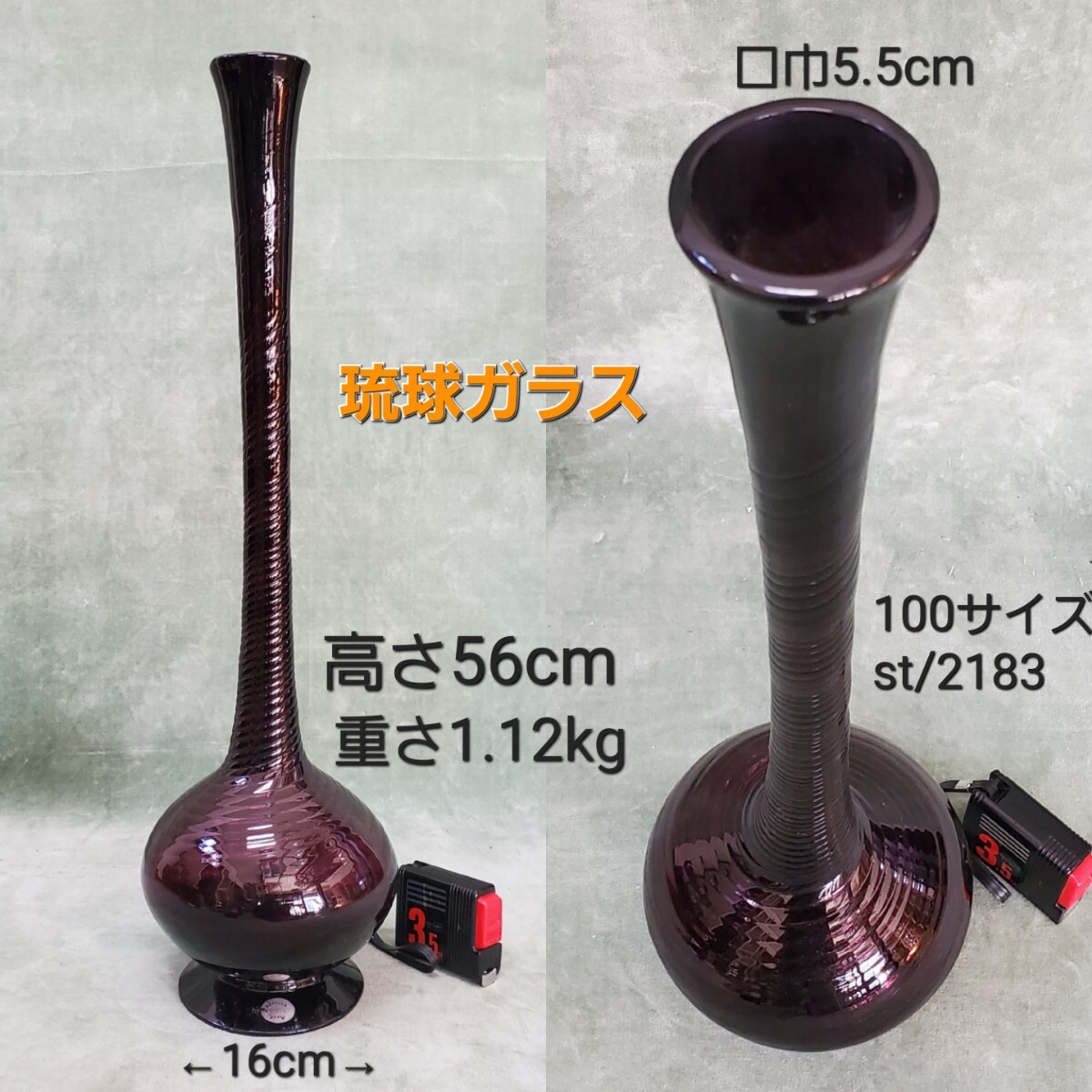 - 琉球ガラス 吹きガラス アンバー 高さ56cm ガラス工芸 和硝子 花瓶 花器 色被せ 手作り 古民芸 st/2183