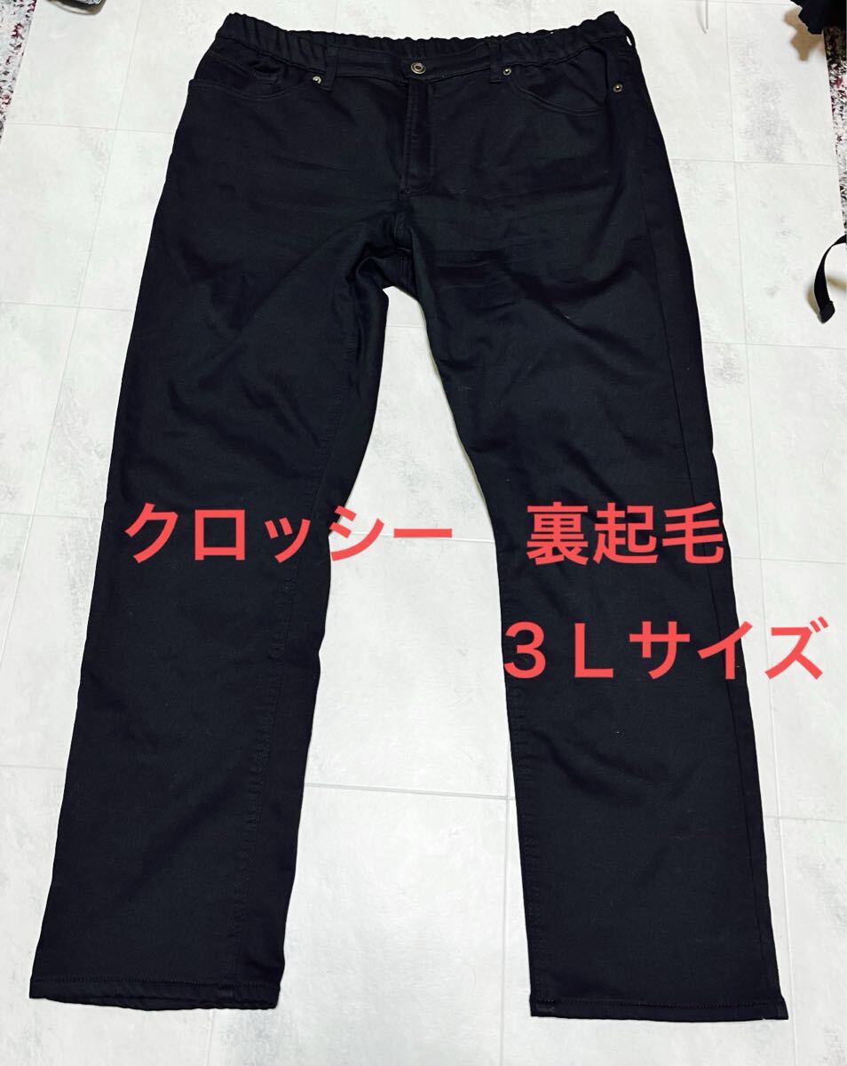 - 美品!クロッシー CLOSSHI 黒 ブラック パンツ 大きいサイズ 3L 96-106 ロング 裏起毛 ストレッチ 暖パン