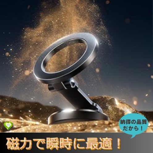 - 【磁力で瞬時に最適!】車載 スマホホルダー マグネット式 MagSafe対応 360°自由回転 折りたたみ式 取付簡単 強力 安定性