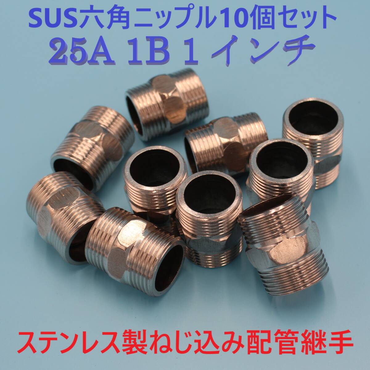 - SUS六角ニップル25A 1B 1インチ10個セット ステンレス製ねじ込み配管継手