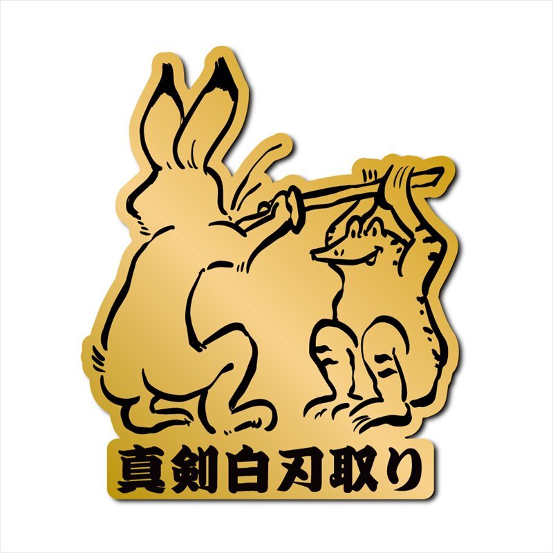 - (マットゴールド) 鳥獣戯画風 面白ステッカー 真剣白刃取り 文字ありタイプ デコトラ