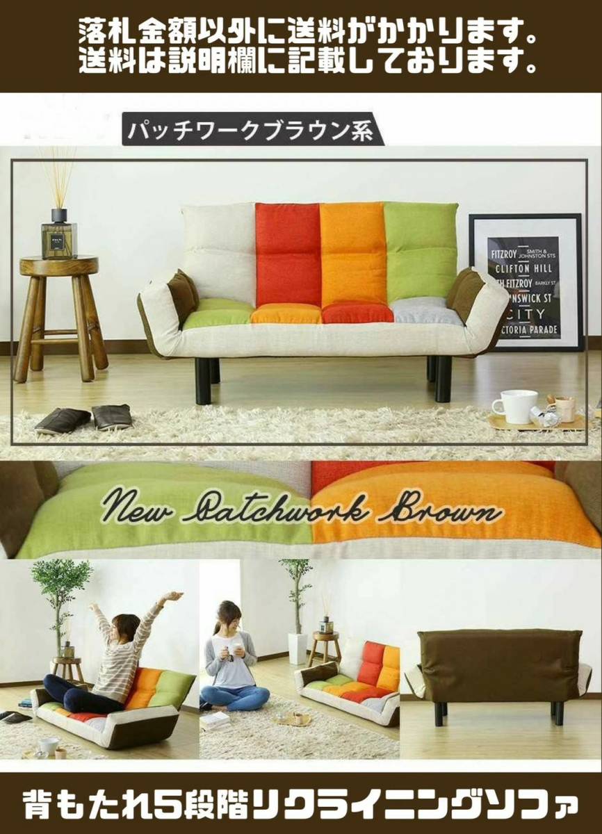 - 未使用 背もたれ5段階リクライニングコンパクトソファ 2人掛 HIGHスタイルLOWスタイル変更可 MZH-SF050-2P FABパッチワークブラウン