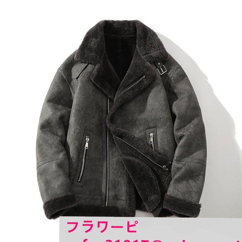 - 秋冬新品 ファーコート ムートンコート 超防寒 厚手 ライダース フライトジャケッゾン グレー M