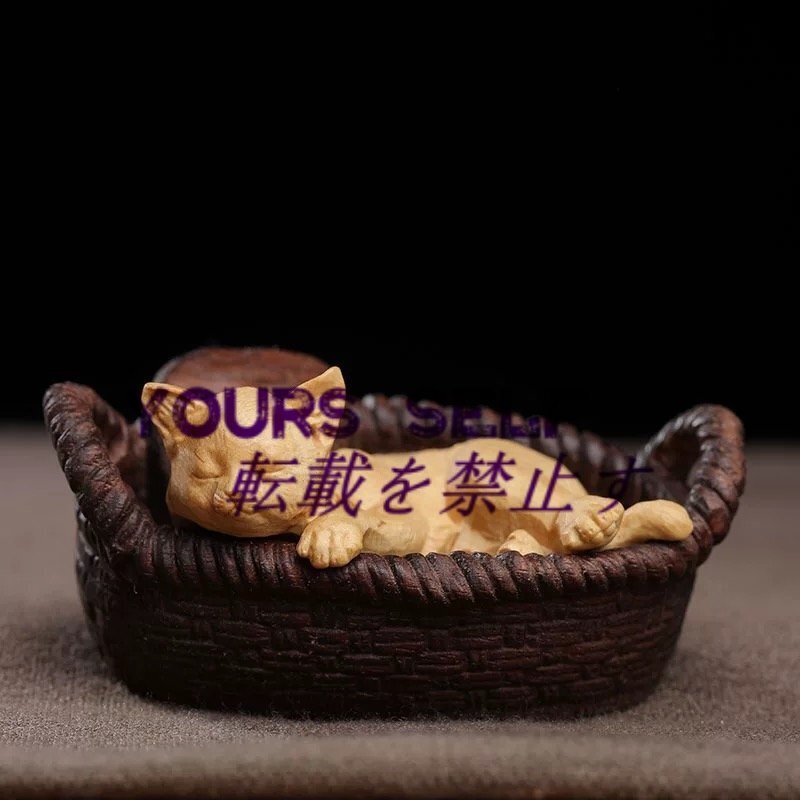 - 動物 猫 飾り 置物 木彫 彫刻工芸品
