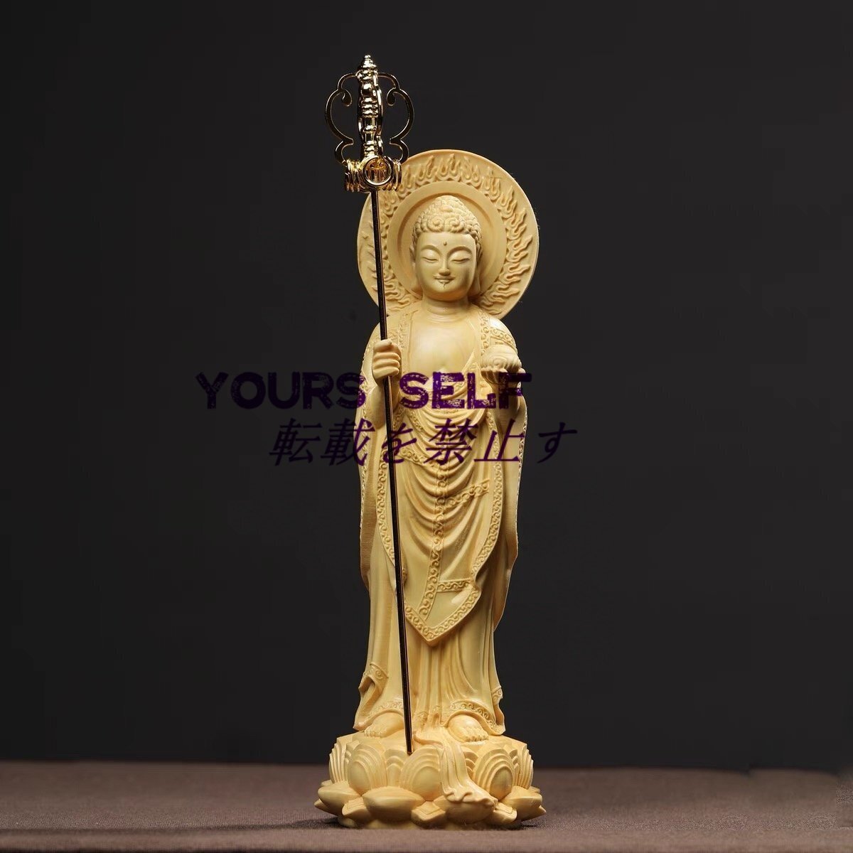 - 木彫りの仏像 薬師如来立像 桧木製無病息災・病気平癒・守護・厄除け・開運 高さ30cm×巾10.5cm