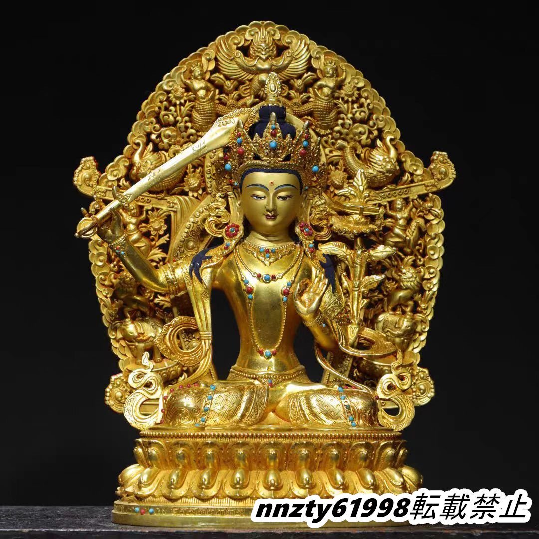 - 仏像 清代 銅琉金 描彩 チベット密教 文殊菩薩 仏教古美術 供養品 極細工 時代物 古置物 中国古美術 唐物旧蔵