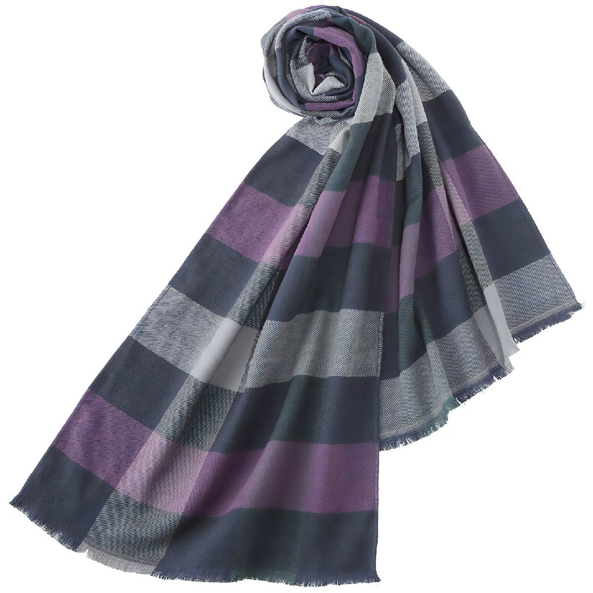 > 綿100% お肌に優しい 今治タオル ブロックチェック柄 マフラー やわらかく あったかい 188cm×38cm 大判 ネイビー 日本製