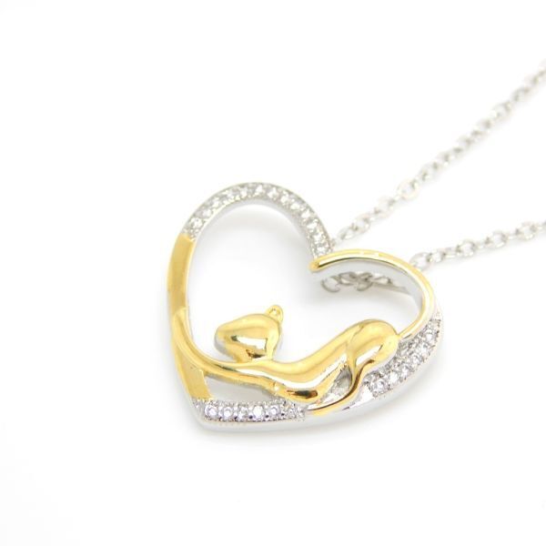 > 送料無料★新品 ハートフレーム 猫デザイン CZダイヤモンドネックレス XN-A10 訳有品 ゴールド シルバー925 ジルコニア プラチナ仕上