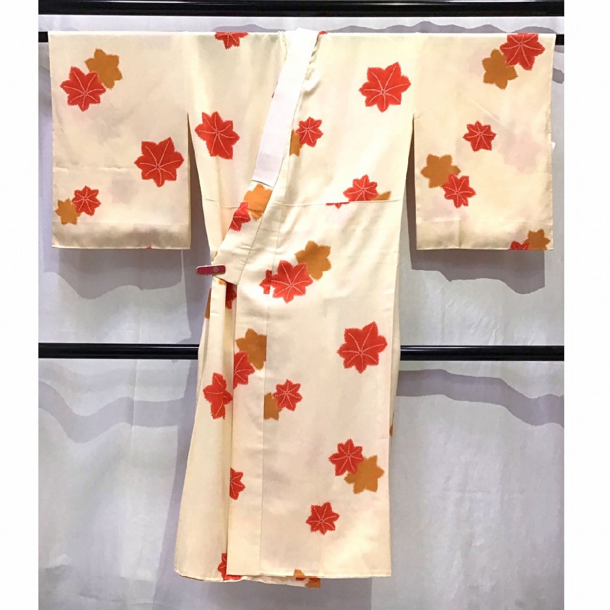 > 着物・襦袢・正絹・紅葉柄・クリーム地・No.200701-1126・梱包サイズ60