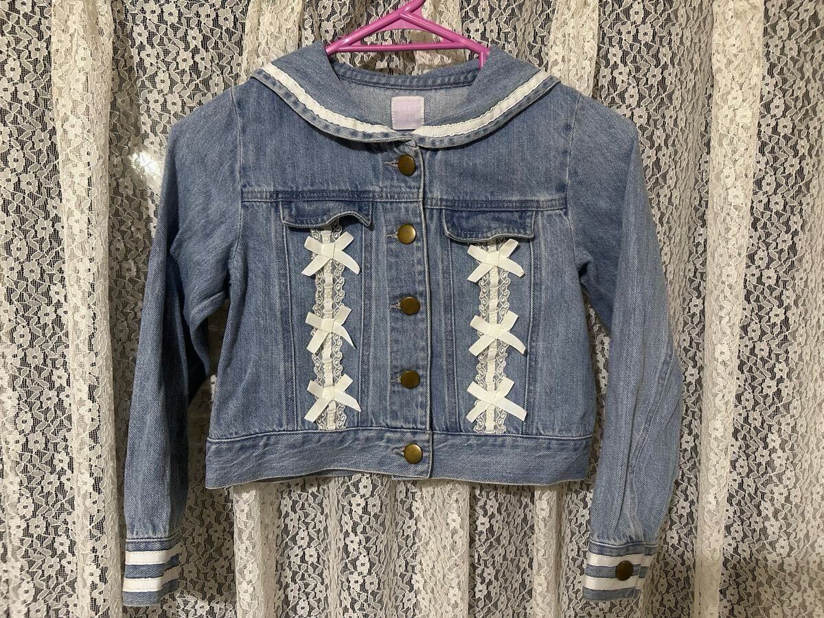 - axes femme kids/キッズ/子供用/サイズ140/デニムブルゾン/ジージャン/セーラーカラー/刺繍入り/レース/デニムジャケット/