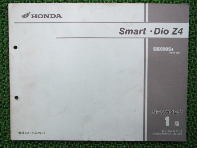 > スマートディオZ4 パーツリスト 1版 ホンダ 正規 中古 バイク 整備書 SKX50S AF63-100 Ge 車検 パーツカタログ 整備書