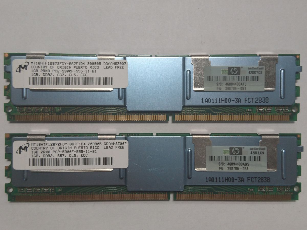 - 中古品★Micron サーバー用メモリ 1GB 2Rx8 PC2-5300F-555-11-B1★1G×2枚 計2GB