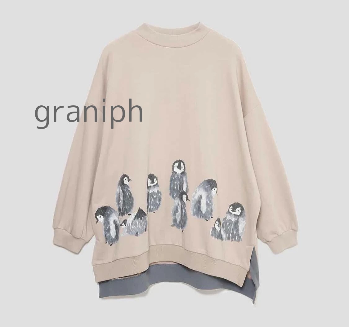 - graniph グラニフ フラッフィー ペンギン 裏毛 スウェット ワンピース 新品 未使用 ゆったり チュニック トレーナー