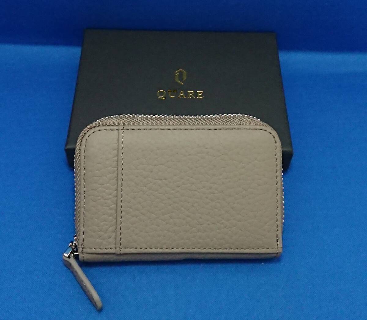 - [QUARE] 本革カードケース クールグレー 最大18枚収納可能、スキミング防止機能、コインケース