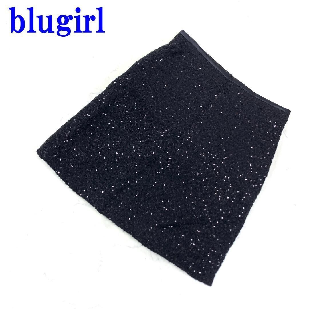 - ブルーガール ひざ丈スカート ウール スパンコールblugirl 裏地有 ブラック 黒 36 C2020