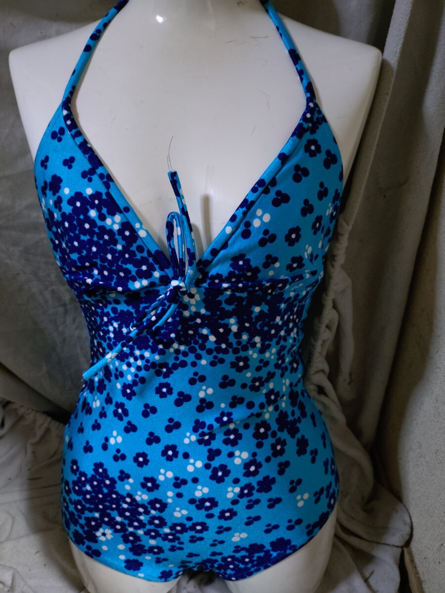 - M3659◆Peter Pan◆セレブなブルー系花柄ワンピース水着◆推定7S