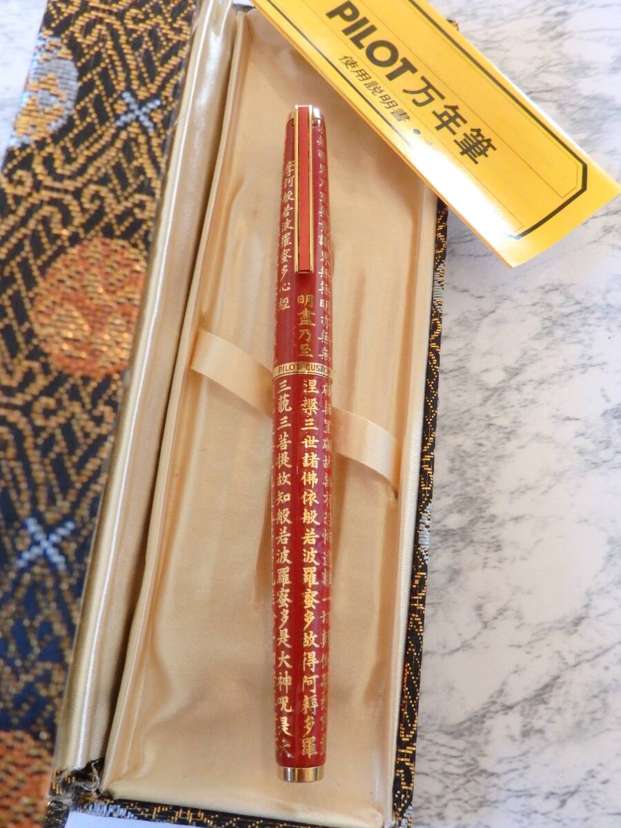 > ◆【極上物】【送料440円】パイロット 般若心経 赤漆万年筆 ペン先:18K750ソリッドゴールド F
