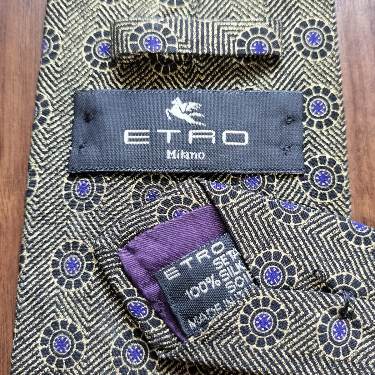 - エトロ(ETRO)黒ゴールド紫丸ネクタイ