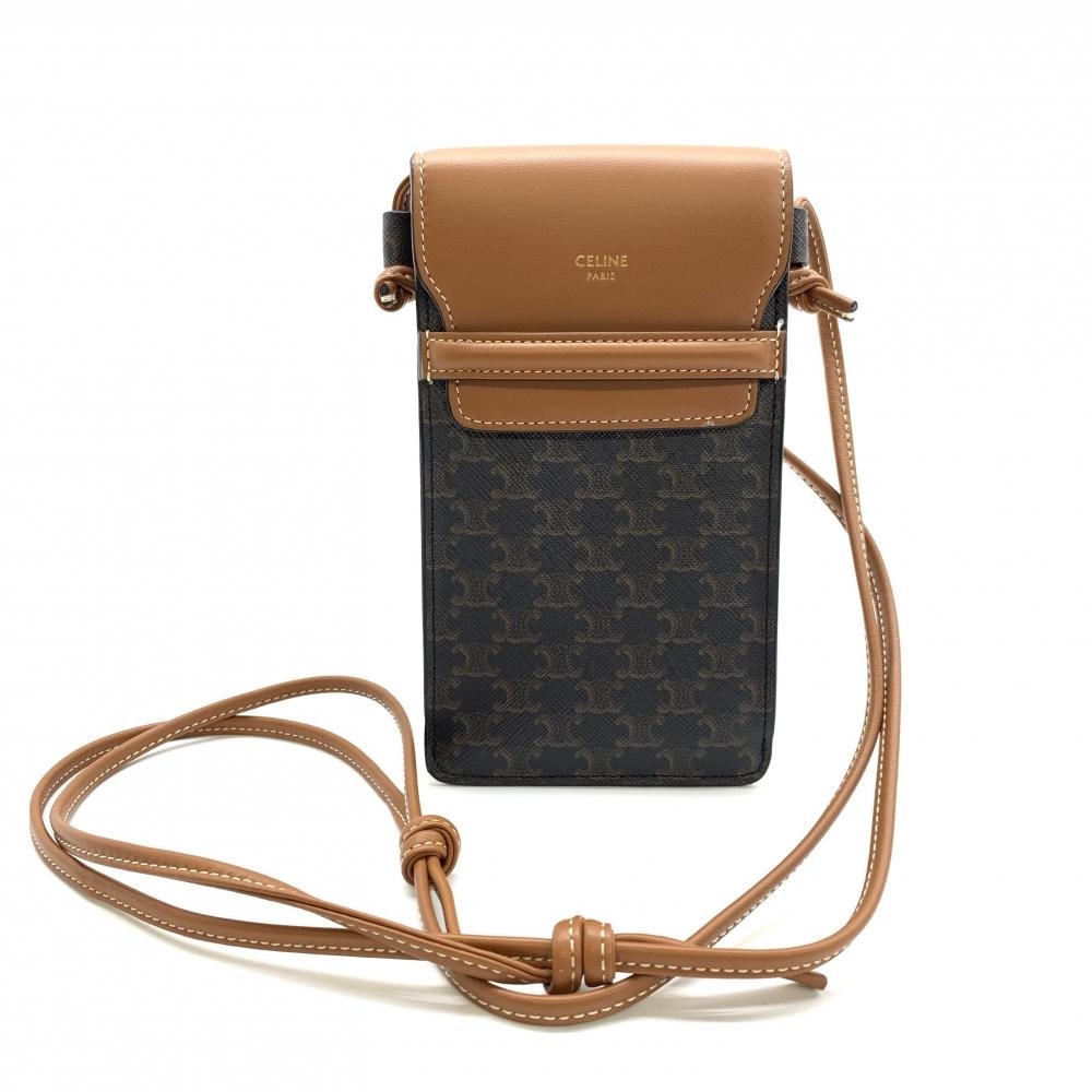 - CELINE セリーヌ 10G332CQD 04LU フラップ付きモバイルポーチ ショルダーバッグ トリオンフキャンバス レザー ブラウン 管理RT40309
