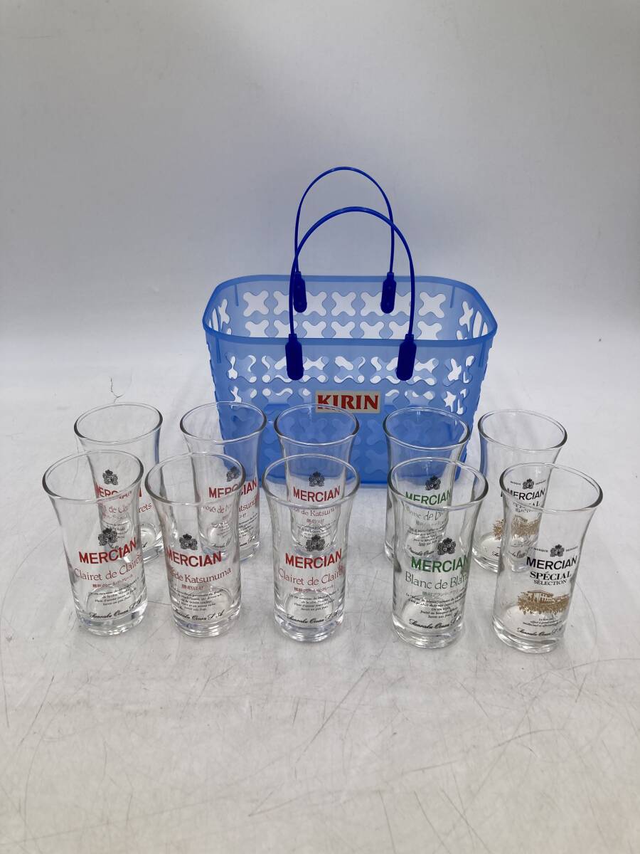 > 【未使用】MERIAN WINE と・き・め・き・グ・ラ・ス 赤6個/緑2個/黒2個 KIRIN かご1個/青 ノベルティ レトロポップ ガラス商品 ガラス製品