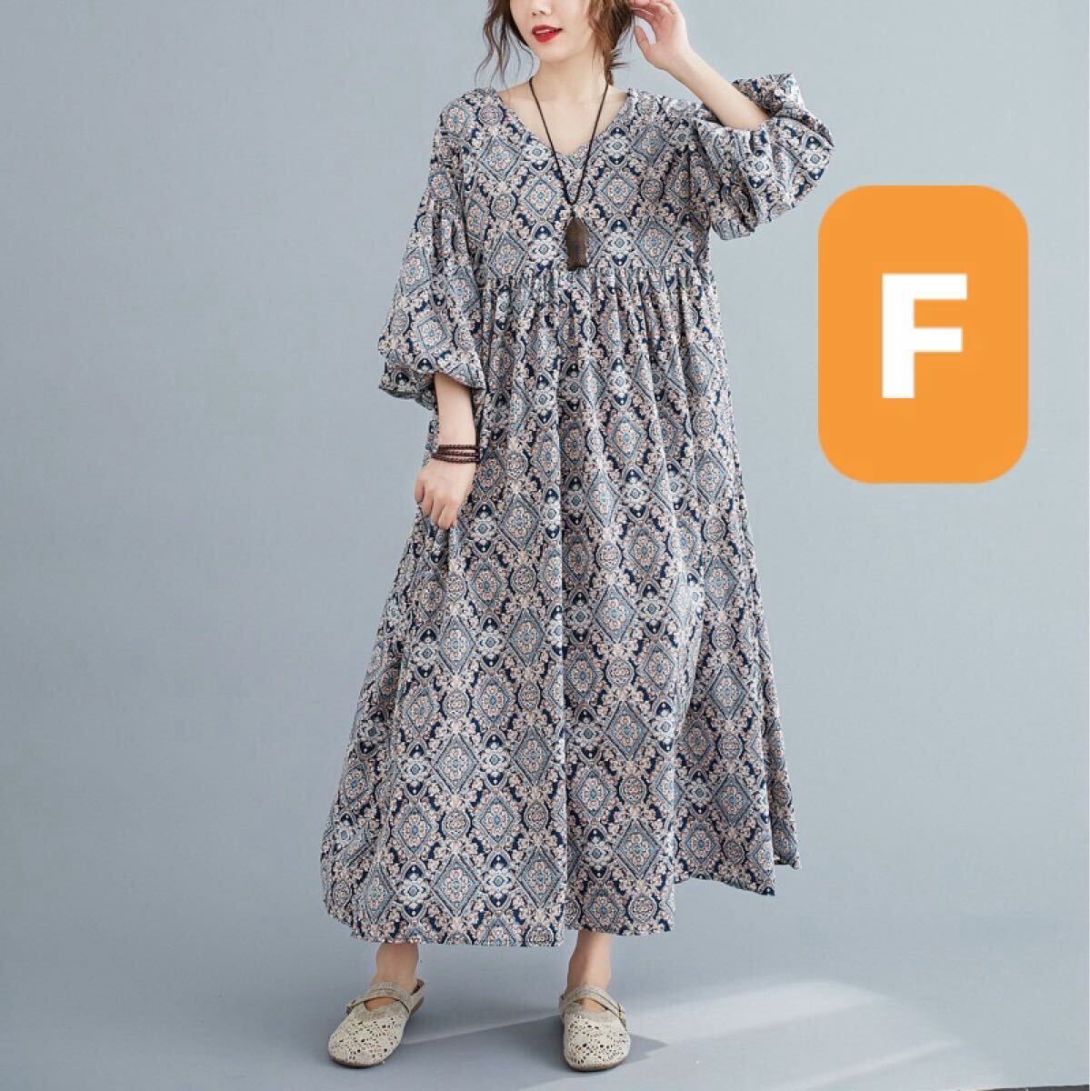 > ワンピース ペイズリー柄 ロングワンピース マキシ丈 5分袖 ドレス 体型カバー マタニティ ゆったり 人気 イチオシ 推し ゆるっと フリー