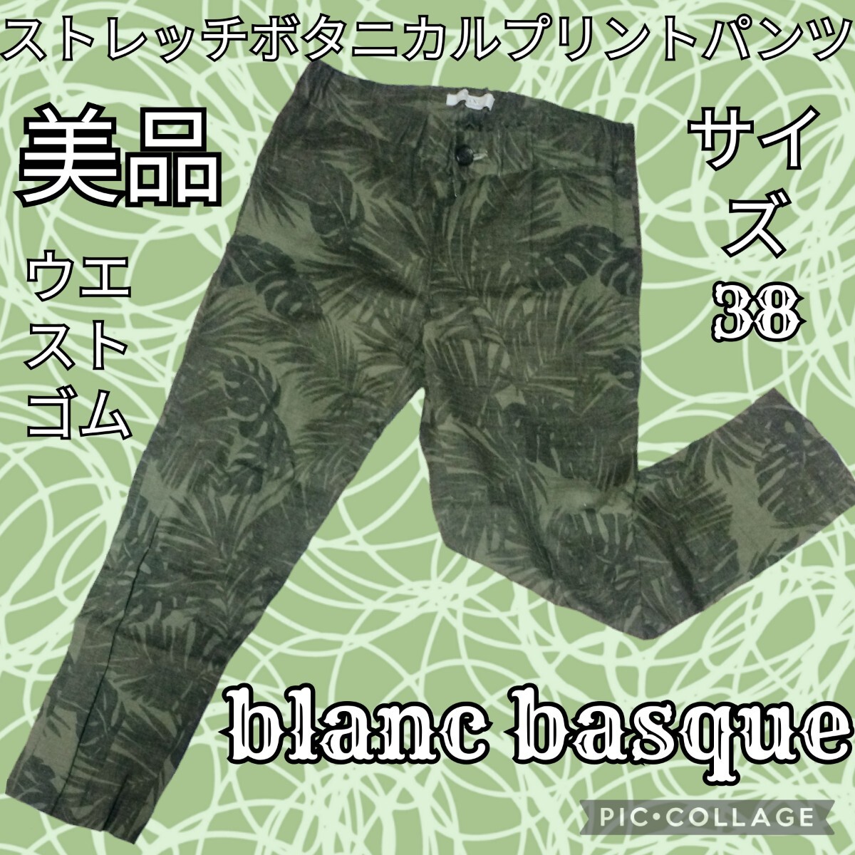 - 美品★blancbasque★ブランバスク★ストレッチパンツ★ウエストゴム★総柄★ボタニカル★カーキ★グリーン★緑★伸縮性★クロップド★春秋