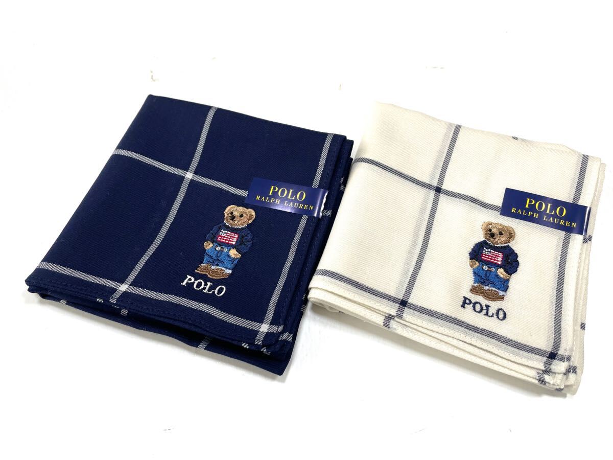 - C 新品 ラルフローレン ハンカチ 2枚 ポロベア 刺繍