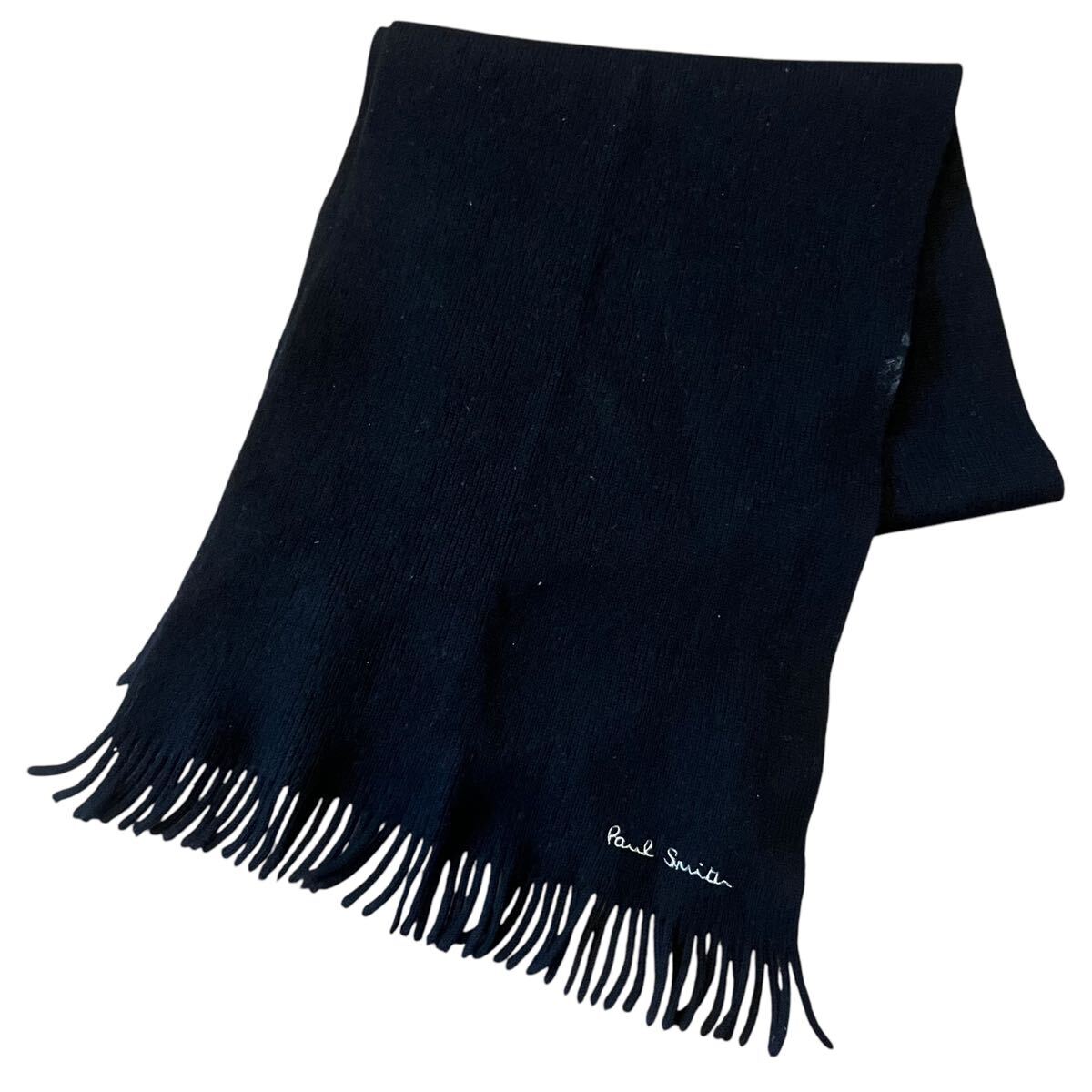 - PaulSmith ポールスミス ウールマフラー 黒 ブラック132×30cm ロゴ刺繍