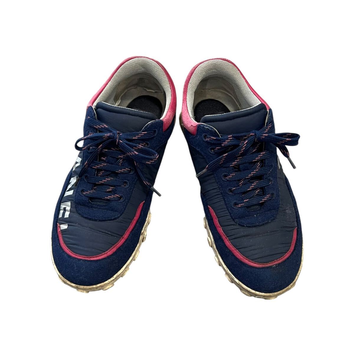 - CHANEL ココマーク CC ロゴ レザー ナイロン ローカット スニーカー