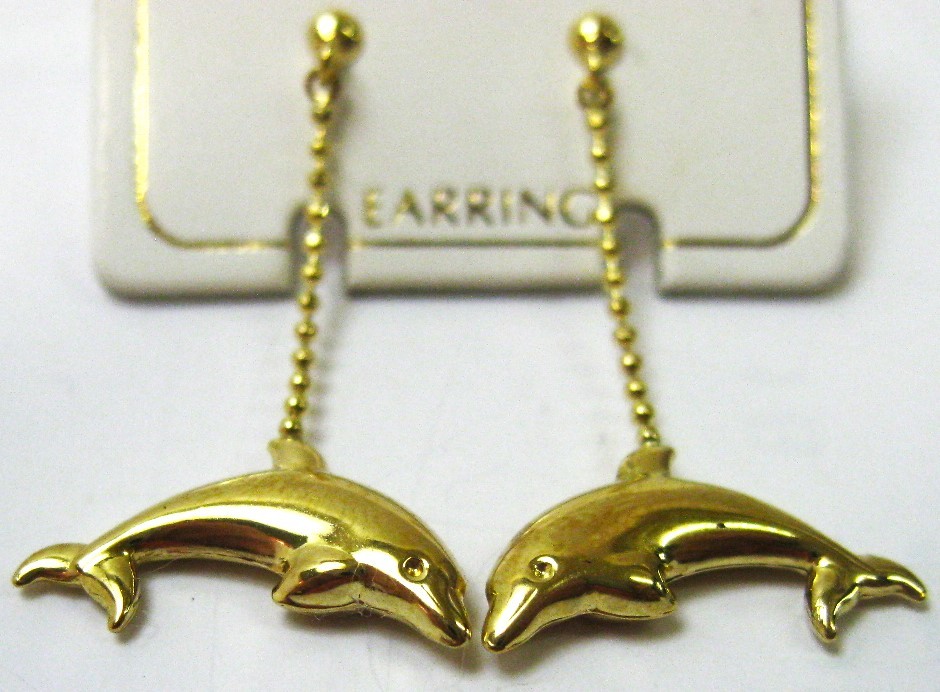 > 【東京 谷中 質屋おぢさん】 極美品 K18 18金 スタッド ピアス イルカ ぶら下がり 16mm