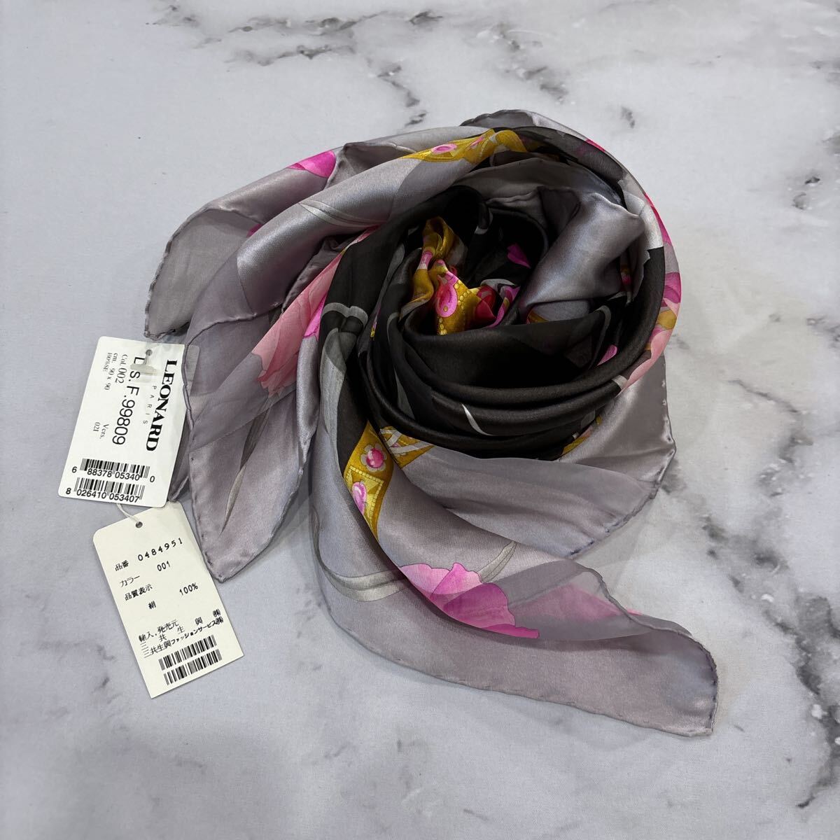 - * 未使用 イタリア製 '高級感溢れる' LEONARD レオナール 最高峰 SILK 総柄 花柄 宝石 大判 ストール 正方形 服飾 レディース 90×90cm