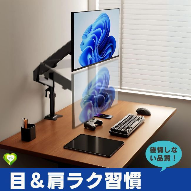 - 【目楽新習慣!】 シングルモニターアーム 2色展開 49インチ(2~20kg)まで ガス式 ディスプレイアーム VESA規格対応 快適 便利 頑丈