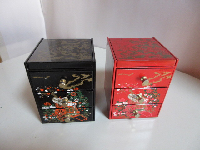 - ミニ箪笥小物入れ鏡付き赤、黒中古(送料無料)