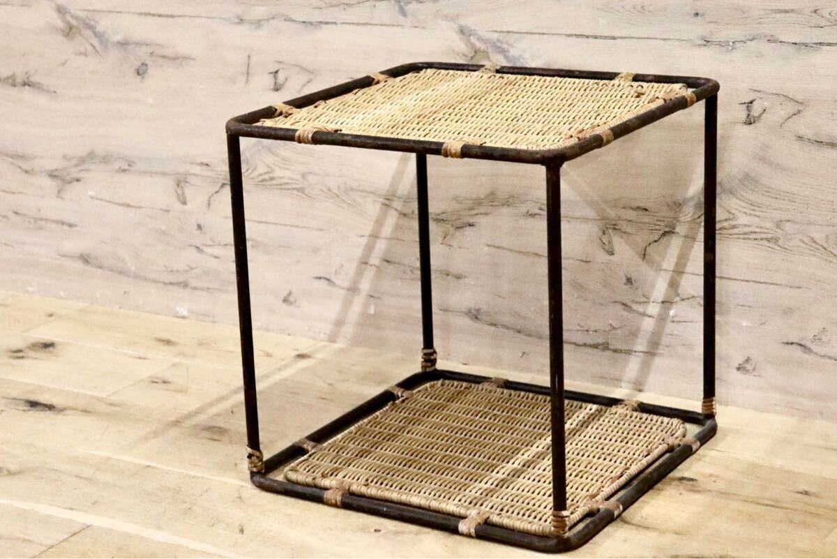 > GMHH388A○アジアン サイドテーブル 花台 飾り台 コーヒーテーブル リゾート アイアン ラタン 籐 アンティーク