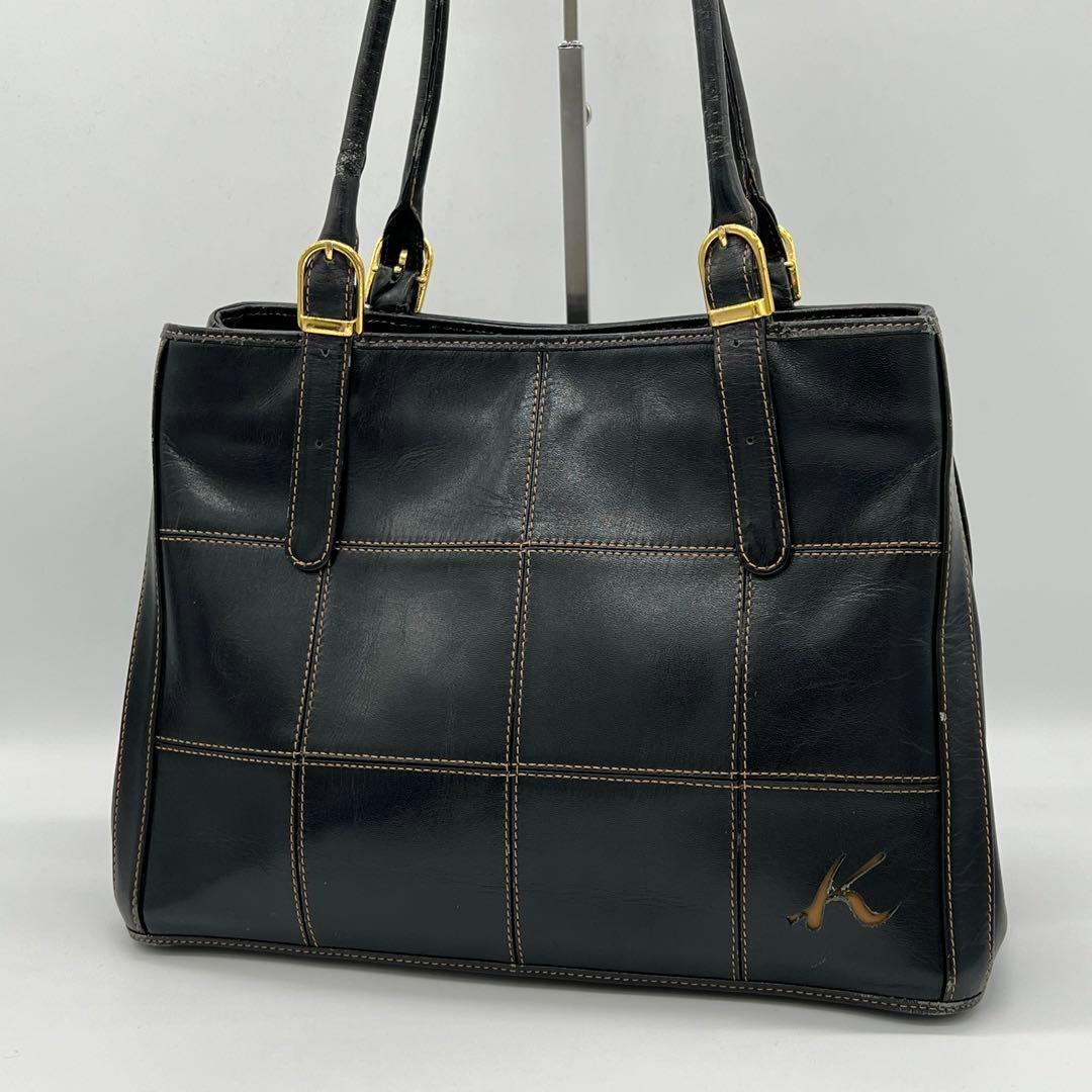 > 【良品】Kitamura キタムラ トートバッグ ハンドバッグ 肩掛け ビンテージ レザー フォーマル レディース 通勤 通学 ブラック CF231219D