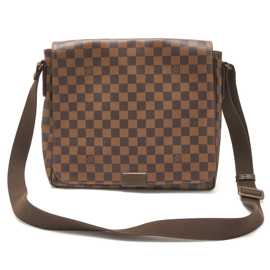 - LOUIS VUITTON ルイヴィトン ディストリクト MM N41212 クロスボディ ショルダーバッグ ダミエ・エベヌ×レザー ブラウン レディース