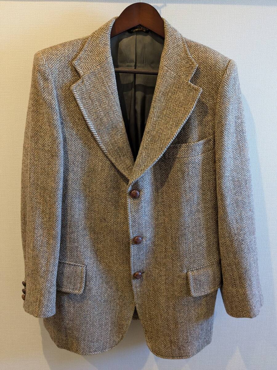 > 希少【70sヴィンテージ】ROOS/ATKINS ハリスツイード ヘリンボーン 3釦 テーラードジャケット くるみボタン ブラウン L