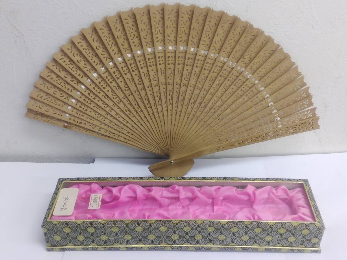 - [服飾] 小物「扇子:白檀扇子 透かし彫り 木製」 サイズ:6.5寸(約20cm) 58,000円のケース入り 和装 ファッション