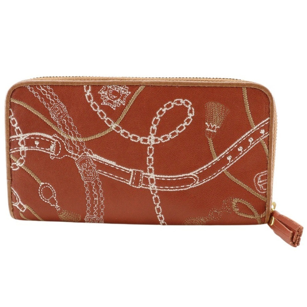 > Endymion Spring エンディミオン・スプリング 本革刺繍 ラウンドファスナー 長財布 赤茶色 レディース【Y192724066】未使用