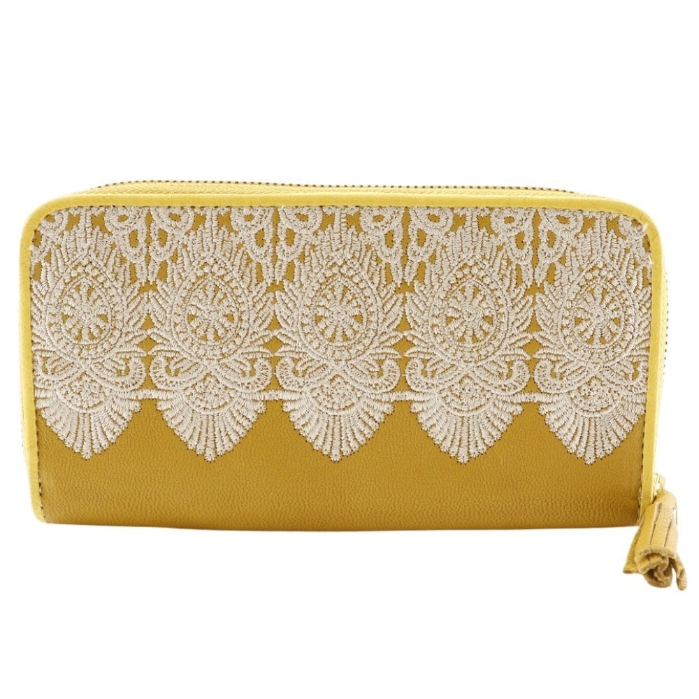 - Endymion Spring エンディミオン・スプリング 本革刺繍 ラウンドファスナー 長財布 黄色 レディース【Y192724197】未使用