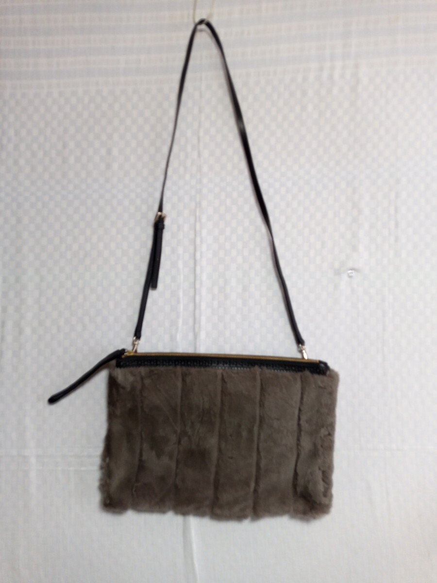 - 10857 ★★ NEW YORKER ファー ショルダーバッグ 黒×グレー