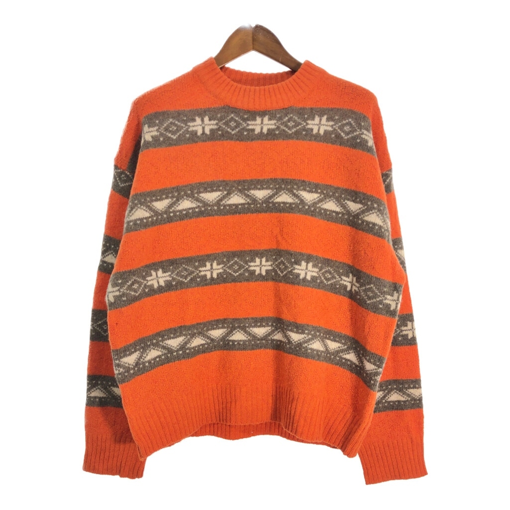 > 90年代 ORVIS オービス ウールニット セーター アウトドア 総柄 オレンジ (メンズ XXL) 中古 古着 S9778