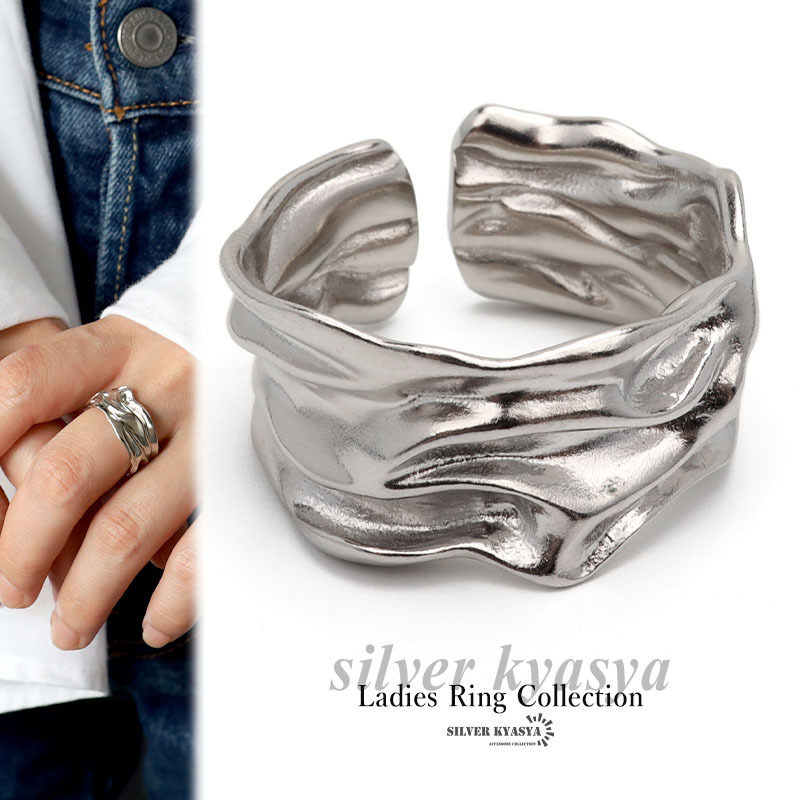 - シルバー925 リング 指輪 しわ加工 ドレープ 太め シルバー 銀色 フリーサイズ 金属アレルギー
