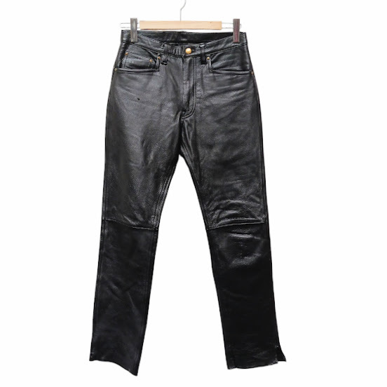 - 90s ORANGE HELMET オレンジヘルメット レザーパンツ 牛革 DZR-F006 サイズ 30 ブラック ※ホツレあり