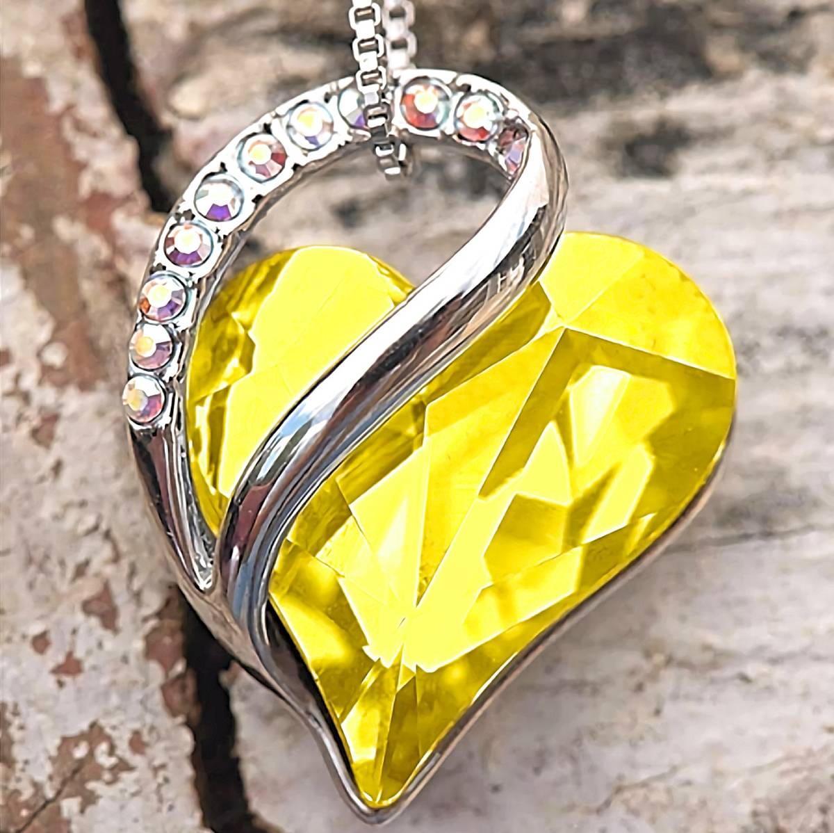 - 新品★送料無料★黄水晶レモンクォーツハート虹ダイヤ プラチナ仕上 925シルバーネックレス 誕生日プレゼント旅行連休ギフト 国内発送