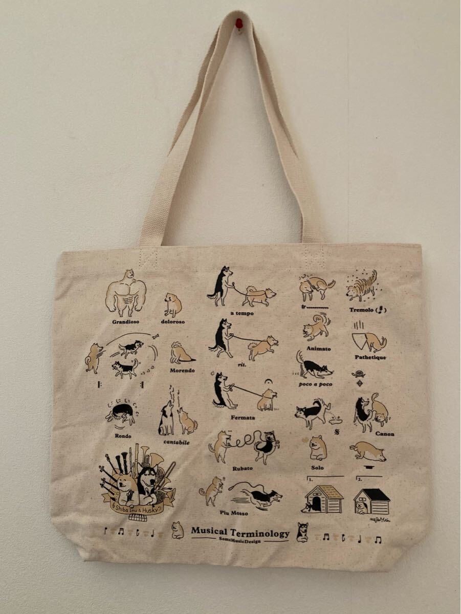 - 新品★厚手コットンキャンバス・トート マチ付 柴&ハスキー 音楽雑貨 サムミュージックデザイン定価 ¥3980