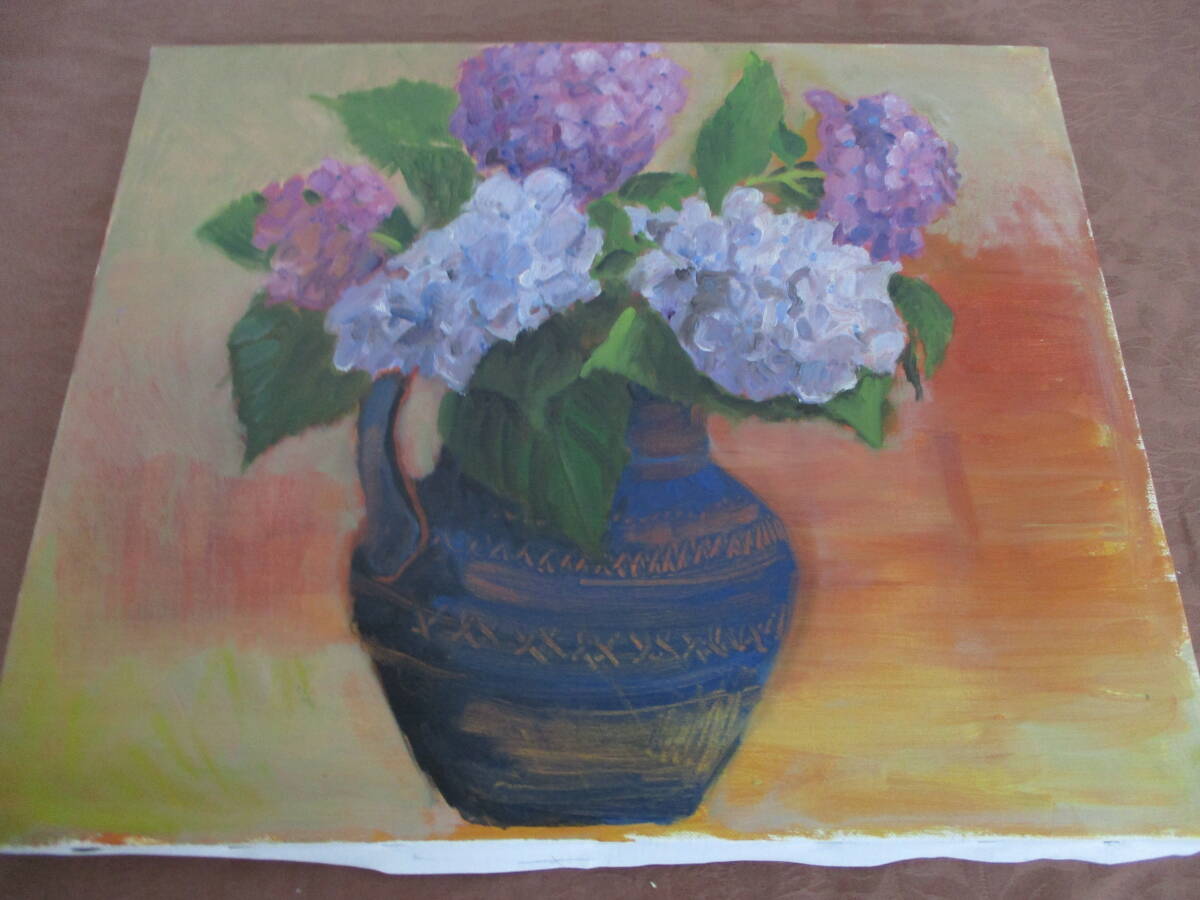- ★油絵 額なし あじさい 38×45.5cm tm2501-30-14★