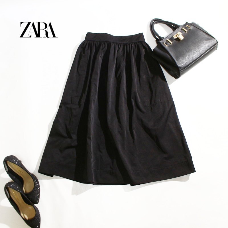 - 美品 ZARA woman ザラ ウーマン オールシーズン 人気 ふんわり ロング丈 ミディ ギャザースカート S ブラック 黒 お洒落 通勤 普段